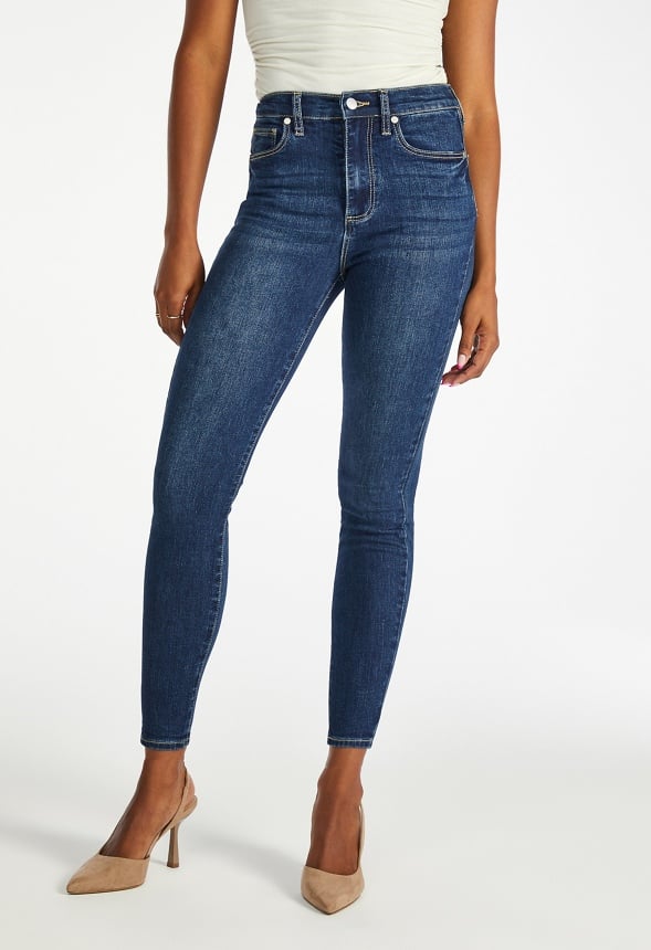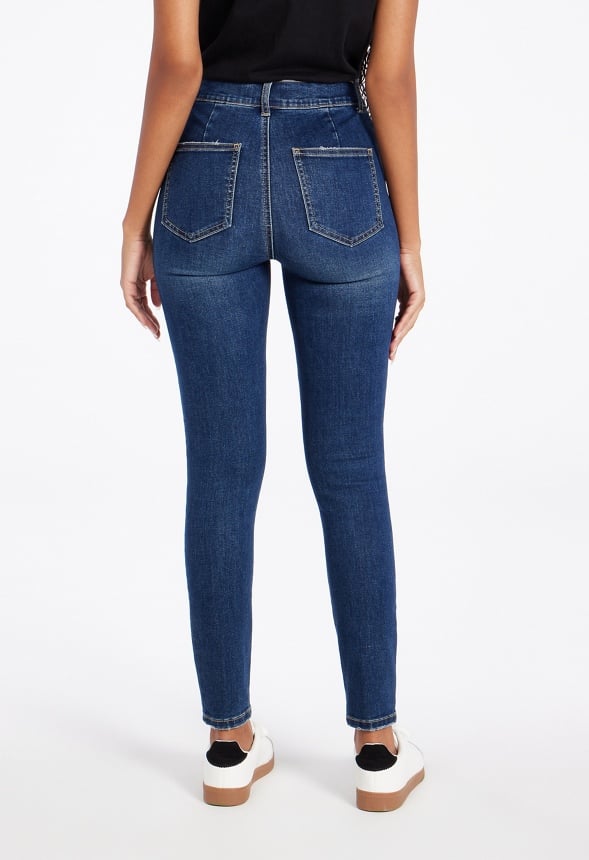 Material : 49% Cotton, 29% Polyester, 21% Rayon, 1% Elastane Approx. Front Rise : 11.37 Approx. Inseam : 27.0 Approx. Leg Opening : 9.25 Fabrication : Dark Wash Care : Machine wash cold. Imported
