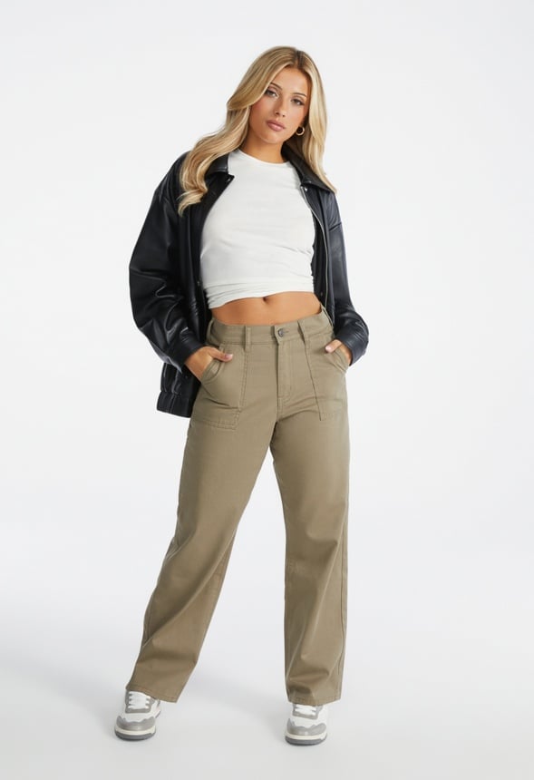 Side cargo leg pockets Material : 100% Cotton Approx. Front Rise : 11.75 Approx. Leg Opening : 18.0 Approx. Inseam : 30.0 Pockets : Back and side pockets Closure : Zipper button front closure Care : Machine wash. Please refer to care instruction label inside garment for further details. Imported