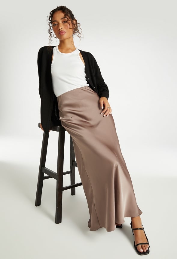 Elastic waistband A-Line Material : 100% Polyester Length : 38 1/2 Care : Machine wash. Please refer to care instruction label inside garment for further details. Imported