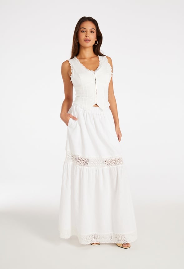 Eyelet closure Lace trim Material : Body: 99% Cotton, 1% Elastane, Lining: 100% Cotton Length : 19 1/2 Care : Machine wash. Please refer to care instruction label inside garment for further details. Imported