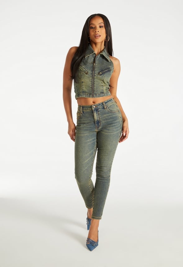 Faux zipper pocket Cropped Material : 65% Cotton, 30% Polyester, 3% Rayon, 2% Spandex Length : 14.0 Closure : Zipper front Care : Machine wash. Please refer to care instruction label inside garment for further details. Imported