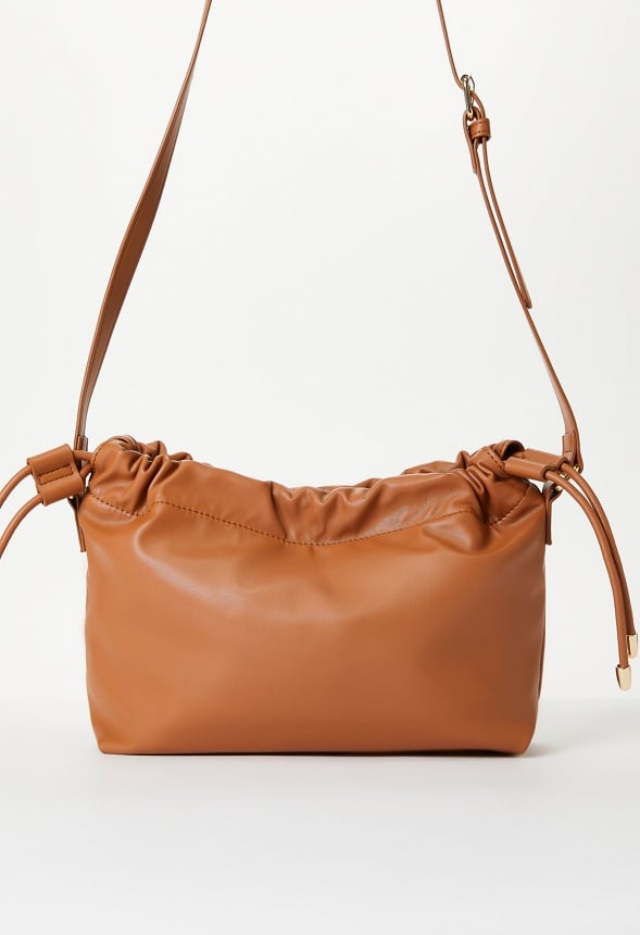 Material : Faux Leather Dimensions : 8.46 L x 3.54 W x 6.69 H Strap : 20.08 – 22.44 Pockets : 1 interior pocket, 1 interior zip Hardware : Light Gold Closure : Drawstring Imported
