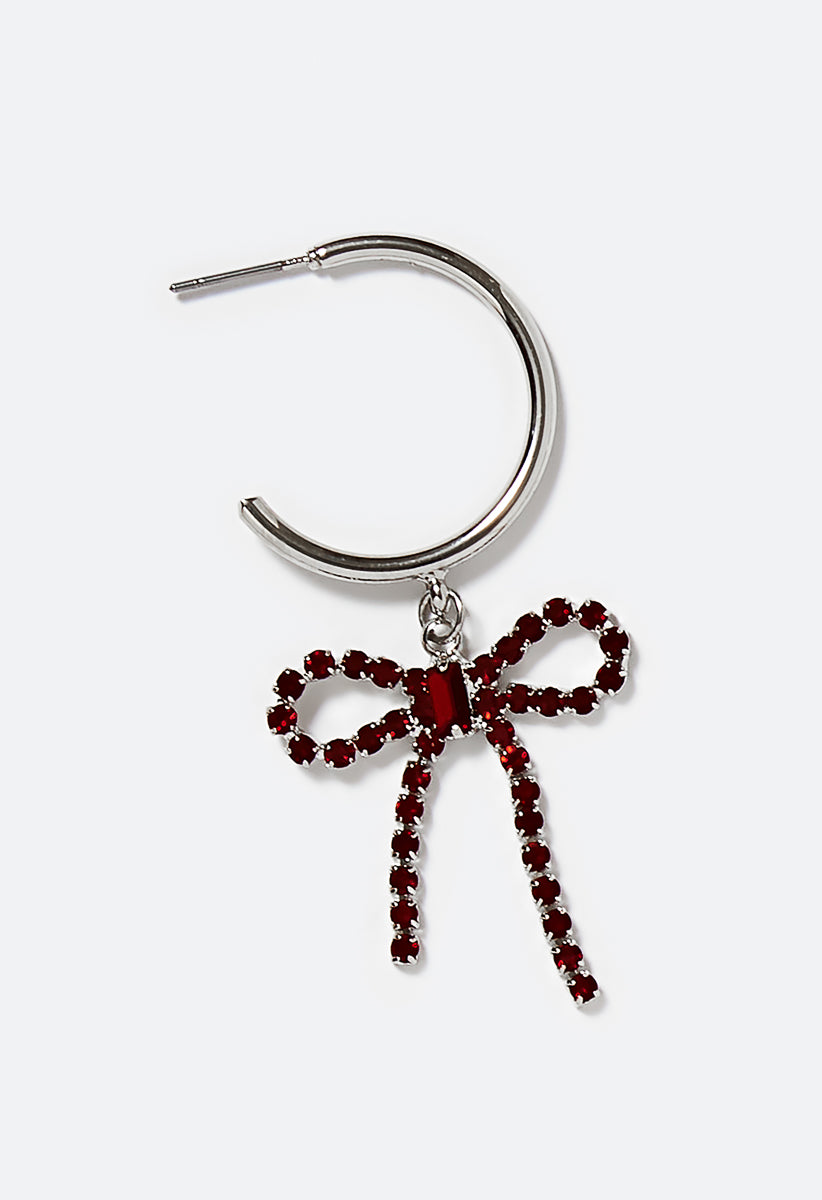 Festive Glass Bow Hoop Earrings Adds A Stylish Twist To Your Holiday Style Material : 40%Steel,30%Glass,30%Copper Dimensions : Length:2.17 Closure : Bullet & Rubber Stoppers Imported