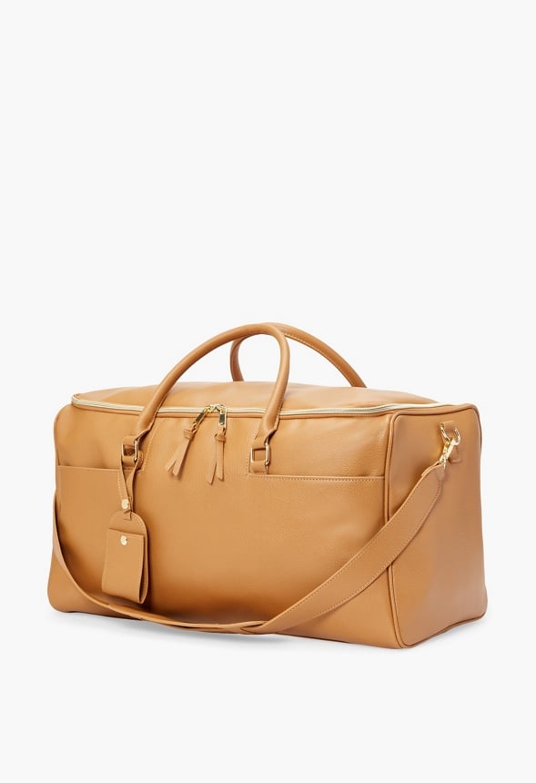 Material : Faux Leather Dimensions : 20.08 L x 10.24 W x 11.02 H Pockets : 1 interior pocket, 1 interior zip, 1 exterior pocket Strap : 5.91 Drop : 14.17 Hardware : Gold Closure : Zipper Imported