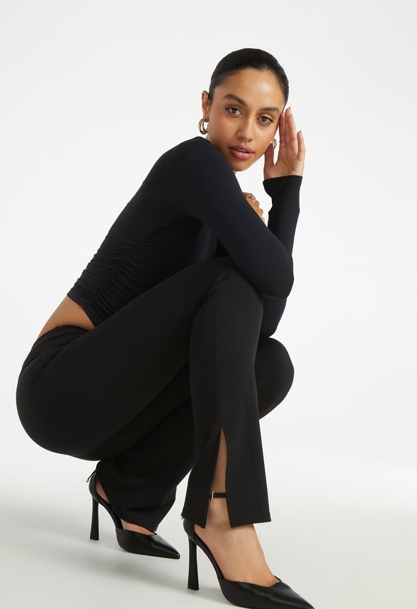 Material : 65% Rayon, 30% Polyester, 5% Spandex Approx. Inseam : 15.5 Approx. Leg Opening : 11.88 Length : 32.0 Closure : Pull On Care : Machine wash cold. Imported
