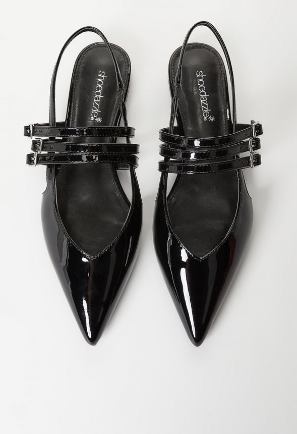 Material : Faux Leather Outside Heel Height : 0.5 Closure : Elastic Strap Imported