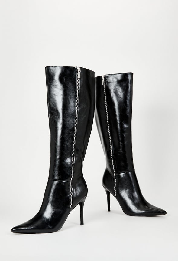 Material : Faux Leather Outside Heel Height : 4.0 Shaft Height : 16.0 Closure : Functional Inside Zipper Imported