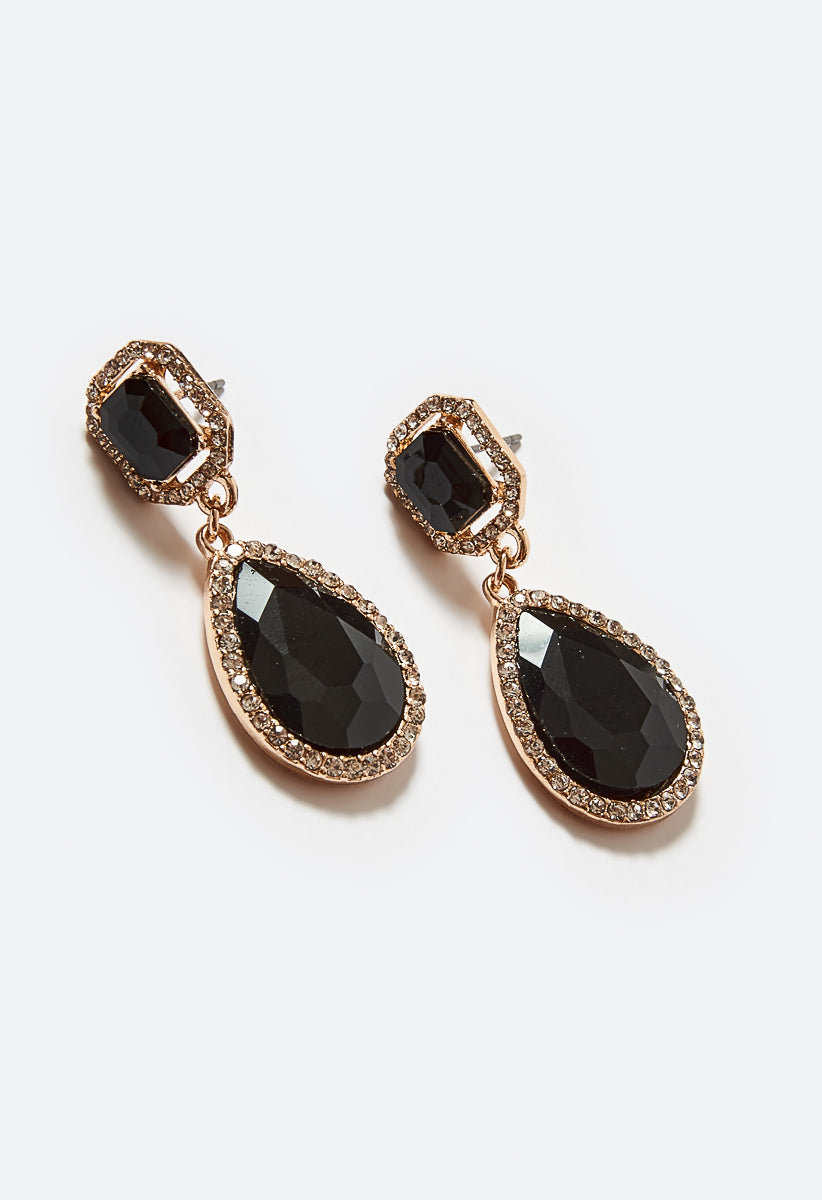 Elevate Your Outfit With These Linked Glass Stone Drop Earrings Material : 65% Glass, 30% Zinc, 5% Steel Dimensions : Length:1.6 Closure : Bullet & Rubber Stoppers Imported