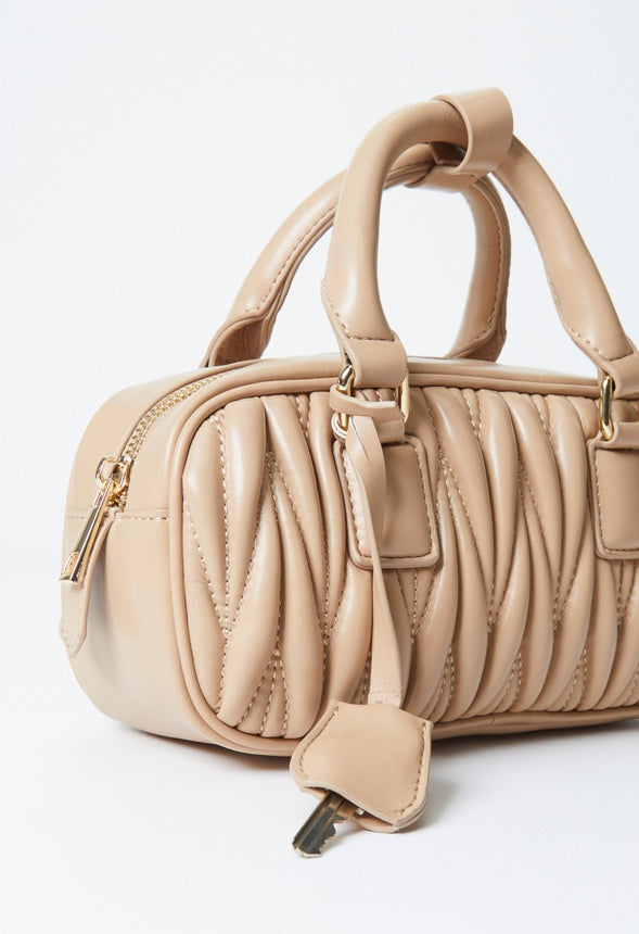 Material : Faux Leather Dimensions : 8.66 L x 2.95 W x 4.13 H Strap : 22.83 Drop : 3.15 Pockets : 1 interior pocket, 1 interior zip, 1 exterior pocket Closure : Zipper Hardware : Light Gold Imported