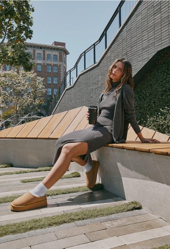 Side slit Mock neck Fabrication : 36% Viscose, 33% Polyester, 21% Acrylic, 10% Nylon Length : 48.0 Care : Machine wash. Please refer to care instruction label inside garment for further details. Imported