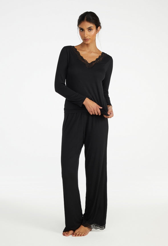 V-neck Lace trim Material : Body: 94% Rayon, 6% Spandex, Lace: 84% Nylon, 16% Spandex Length : Body Length- XS: 42cm, S: 42.5cm, M: 43cm, L: 43.5cm, XL: 44cm, XXL: 44.5cm Dimensions : Chest- XS: 38cm, S: 40cm, M: 42.5cm, L: 44cm, XL: 47cm, XXL: 49cm Care : Hand wash. Please refer to care instruction label inside garment for further details. Imported