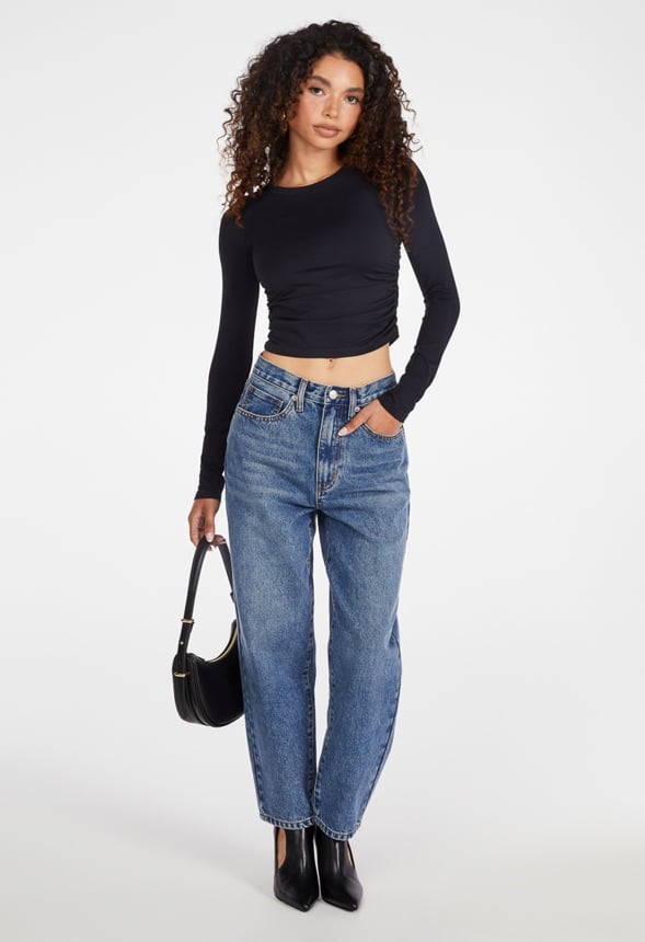 Ruched side detail Cropped fit Material : 93% Nylon, 7% Elastane Length : 16.0 Care : Machine wash. Please refer to care instruction label inside garment for further details. Imported