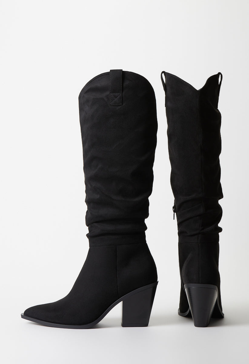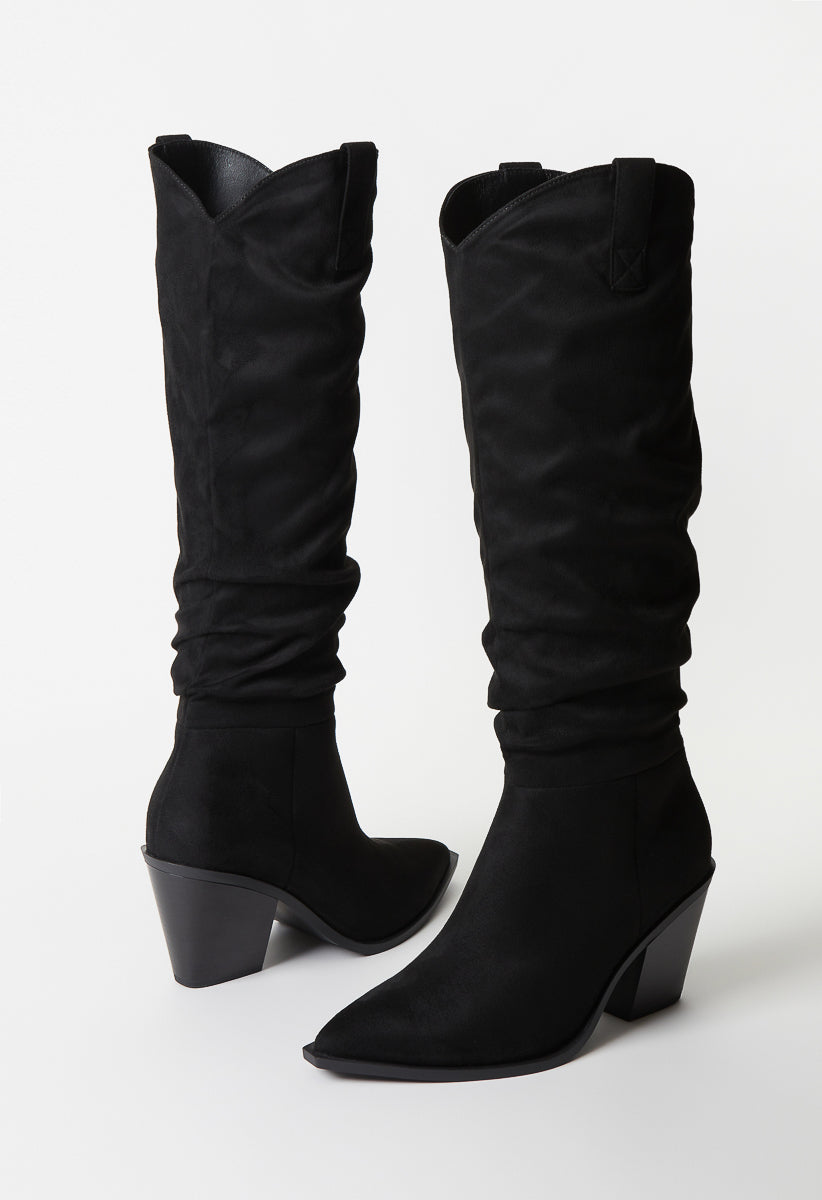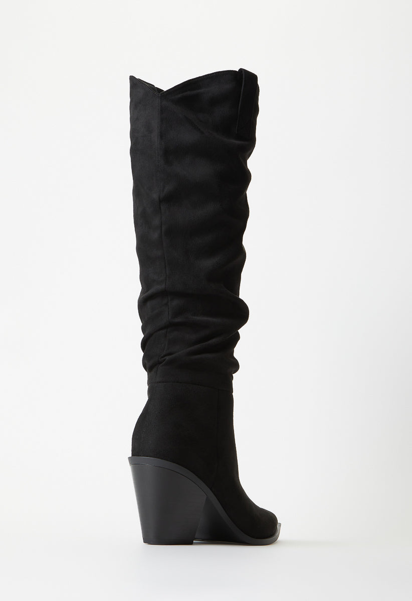 Material : Faux Suede Outside Heel Height : 3.25 Closure : Functional Inside Zipper Shaft Height : 13.75 Imported