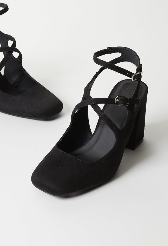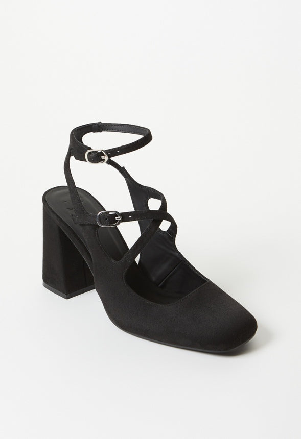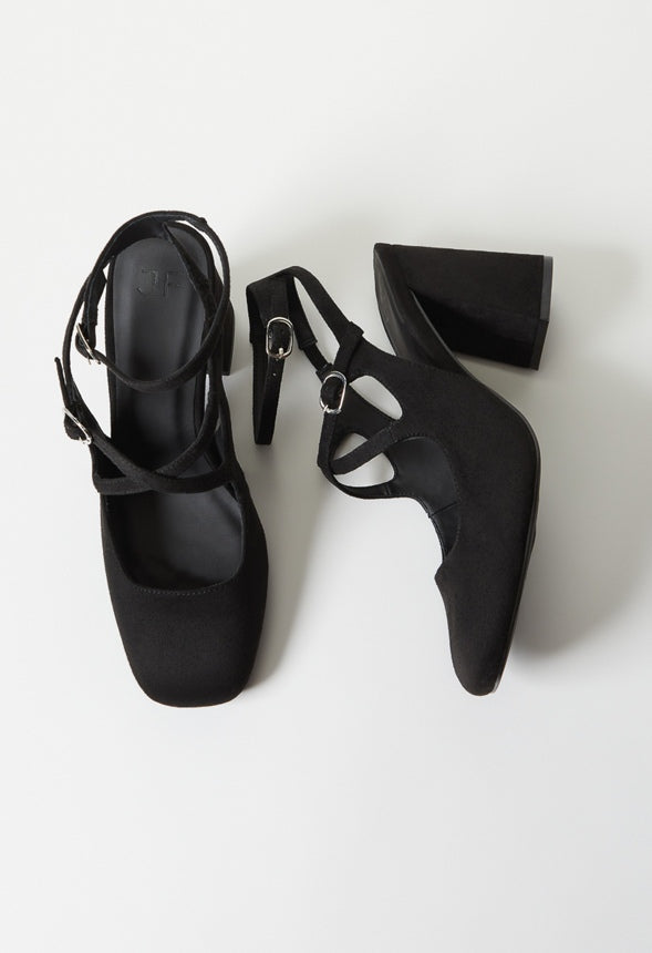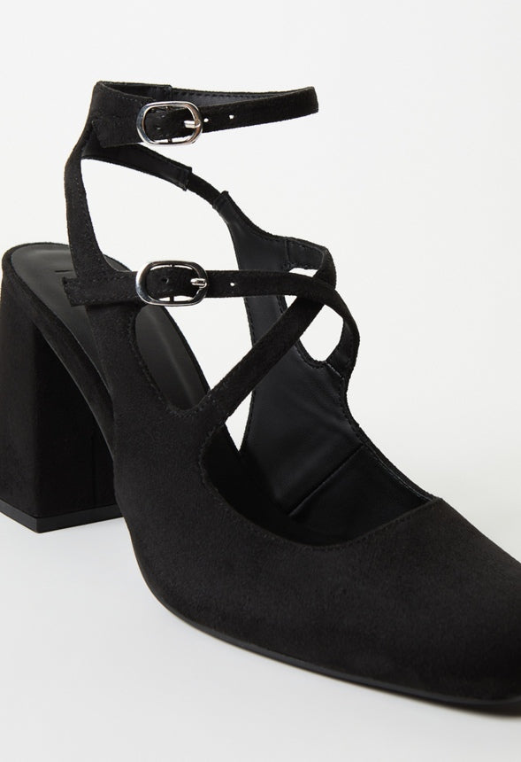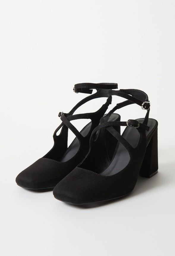 Material : Faux Suede Outside Heel Height : 3.25 Closure : Adjustable Buckle Imported