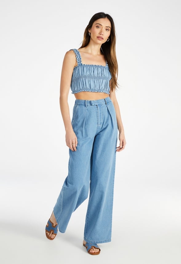 Smocked Denim Crop Tank