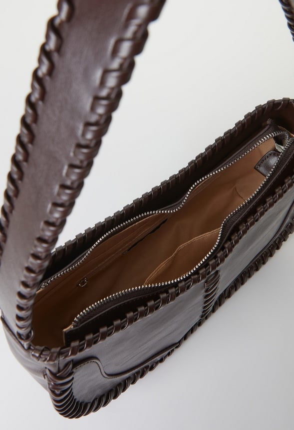 Material : Faux Leather Dimensions : 11.81 L x 3.54 W x 6.3 H Drop : 9.84 Pockets : 1 interior pocket, 1 interior zip Hardware : Silver Closure : Zipper Imported